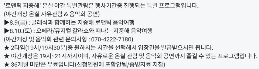 야간개장과 여름축제 정보, 프로그램 예약방법 아래에 정리하였으니 참고 부탁드립니다.