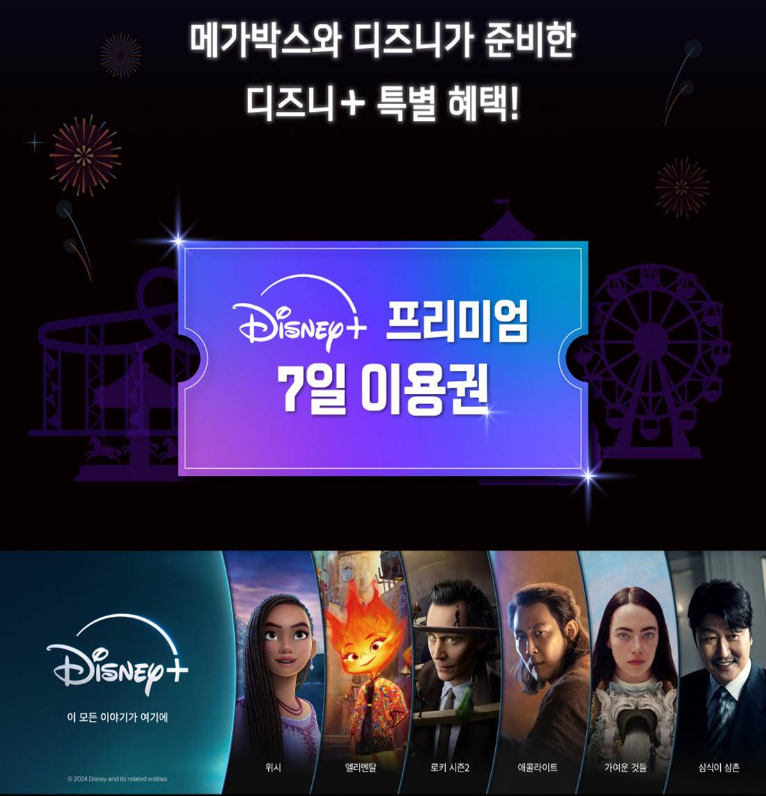 증정 혜택: 디즈니+ 프리미엄 7일 이용권
