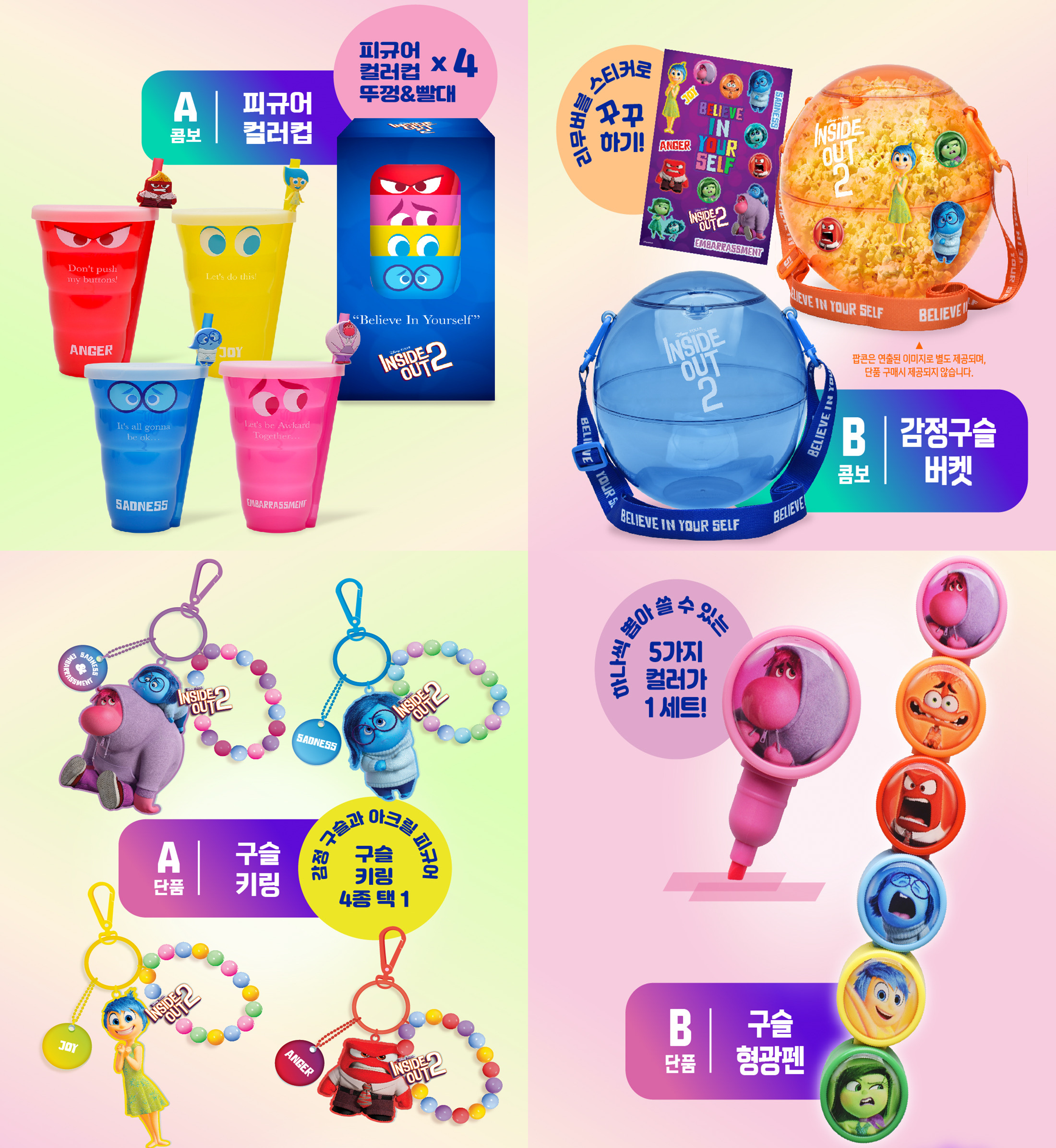 A콤보 피규어 컬러컵과 B콤보 감정구슬 버켓 2가지 종류가 있는데 구성은 아래와 같습니다.