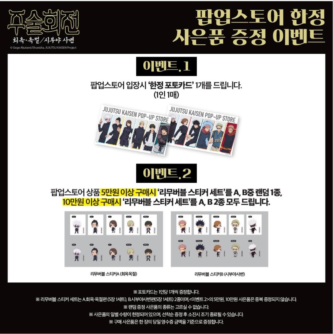 주술회전 대구 팝업스토어에서는 방문하시는 분들을 위한 이벤트가 준비되어 있다고 합니다.