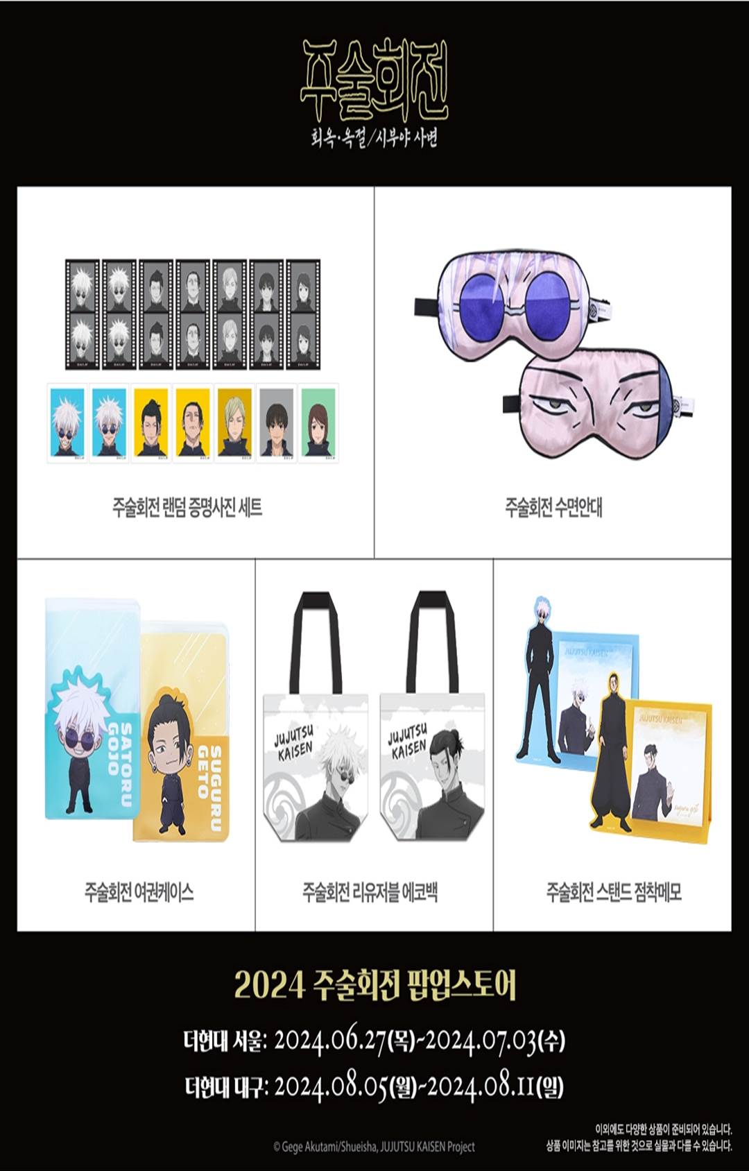 주술회전 팝업스토어 정보와 굿즈 정보 아래에 정리하였으니 확인해 주세요!