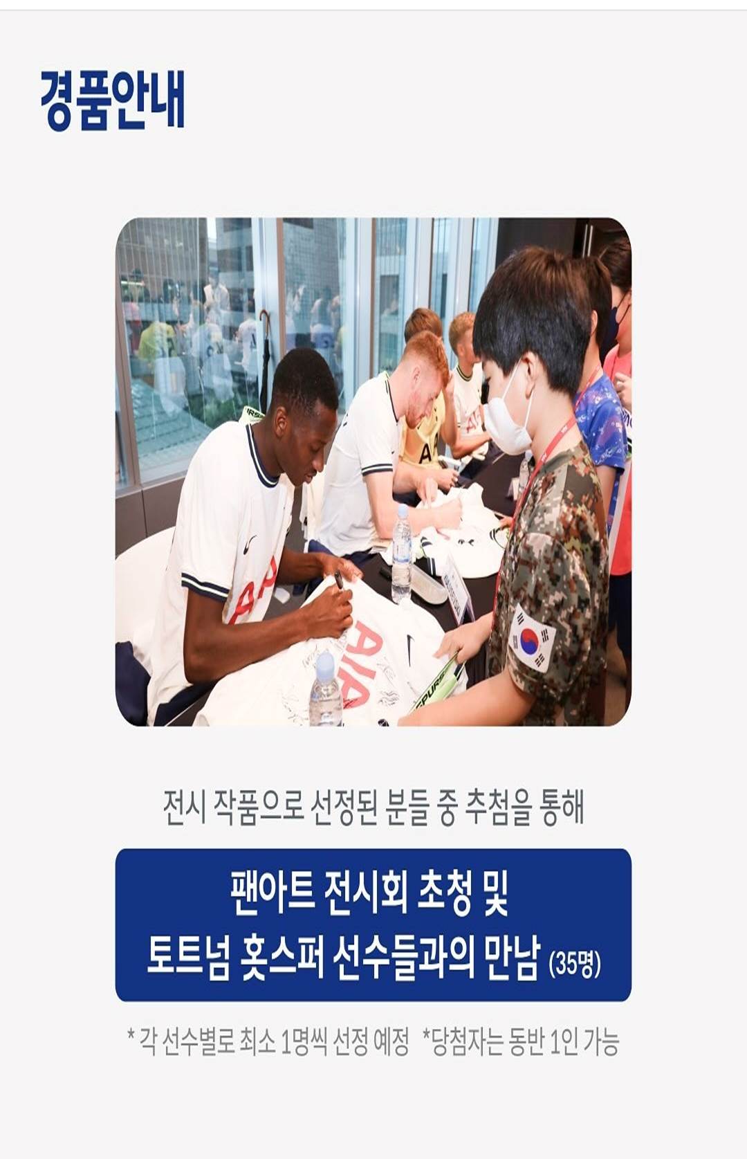 팬아트 전시회 초청의 경우 각 선수별로 최소 1명씩 선정 예정이며, 당첨자는 1인 동반 가능하다고 합니다.