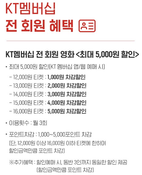 KT 멤버십 전 회원 영화 최대 5,000원 할인